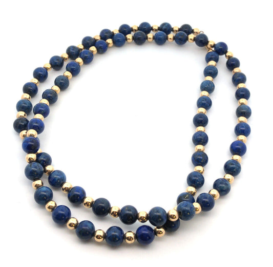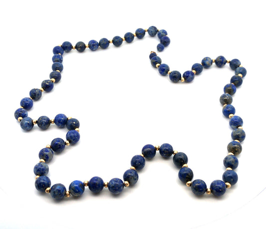 Vintage 14K Yellow Gold Lapis Lazuli Bead Enlightenment Self Awareness Necklace
