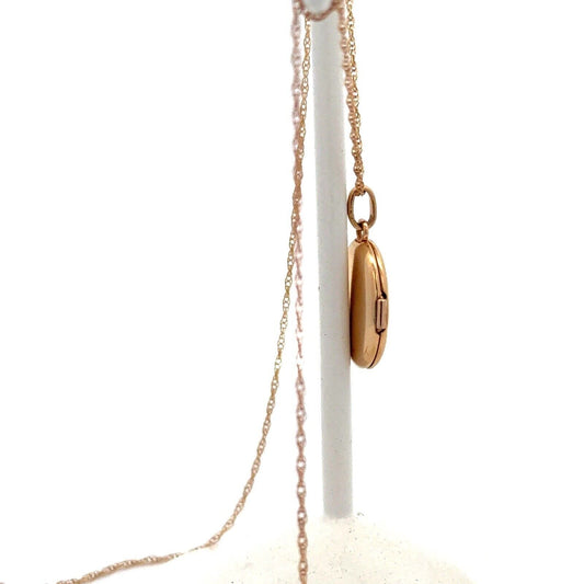 Designer B.A.B. 14K Yellow Gold Engraved Bow Oval Photo Locket Necklace