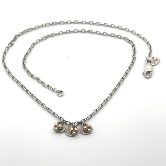 ME & RO 925 Sterling Silver 10K Yellow Gold Bead Three Disc Charm Necklace