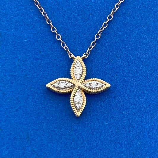 Designer 14K Yellow Gold Diamond Floral Pinwheel Necklace