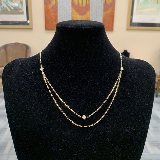 Designer 14K Yellow Gold Pearl Quartet Station Necklace