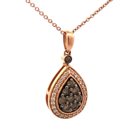 LeVian 14K Rose Gold Chocolate Vanilla Diamond Teardrop Pendant Necklace