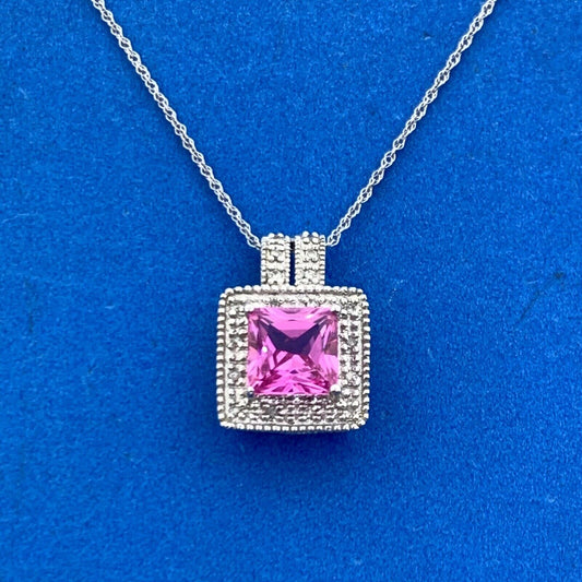 Designer 10K White Gold Princess Pink Sapphire Diamond Pendant Necklace