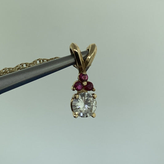 Vintage 14K Yellow Gold Diamond Solitaire Ruby Accented Pendant Necklace