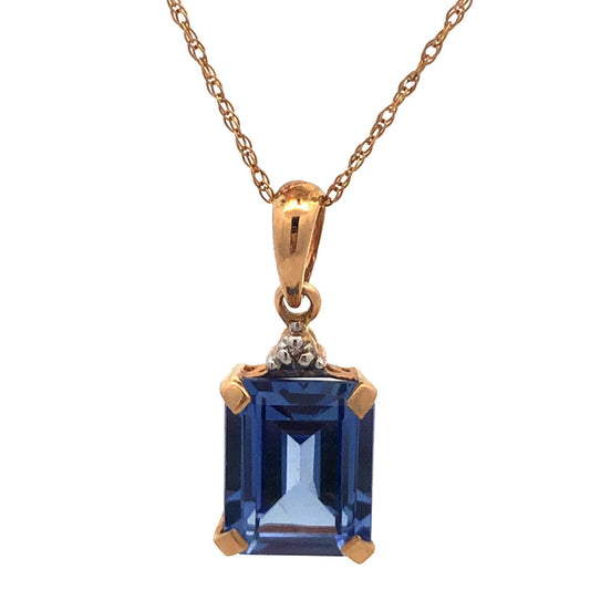 Designer 10K Yellow Gold Emerald Shaped Ceylon Sapphire Diamond Accent Necklace