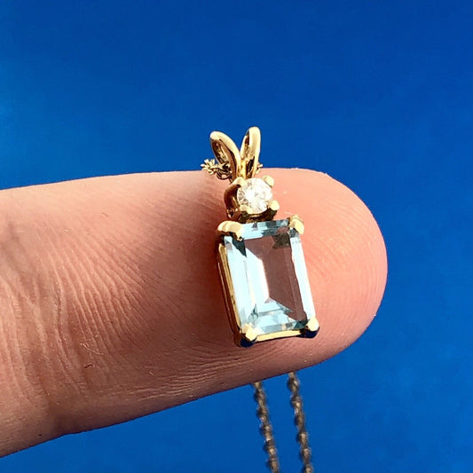 14K Yellow Gold Aquamarine Diamond Accent March Anniversary Pendant Necklace