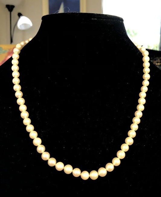 Vintage Majorica 14K Yellow Gold White Simulated Pearl Knotted Beaded Necklace