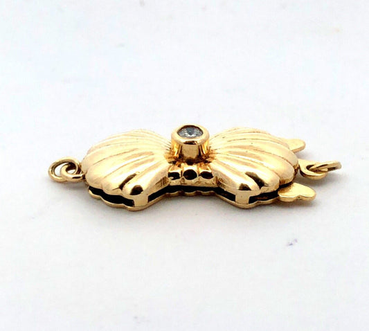 Designer BL 14K Yellow Gold Round Diamond Bow Shape Pearl Necklace Clasp