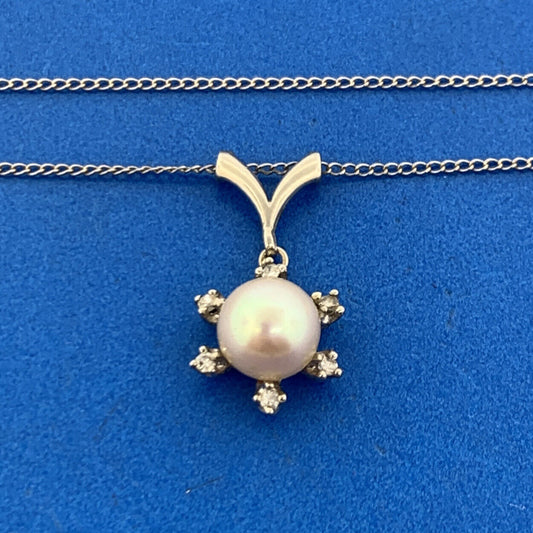 Designer 14K White Gold Pearl Diamond Accented Starburst Snowflake Necklace