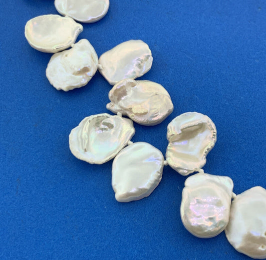 Designer 14K White Gold Hand Knotted Keshi Pearl Statement Necklace