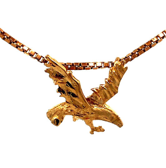 14K Yellow Gold Diamond Cut Flying Eagle Pendant Chain Necklace