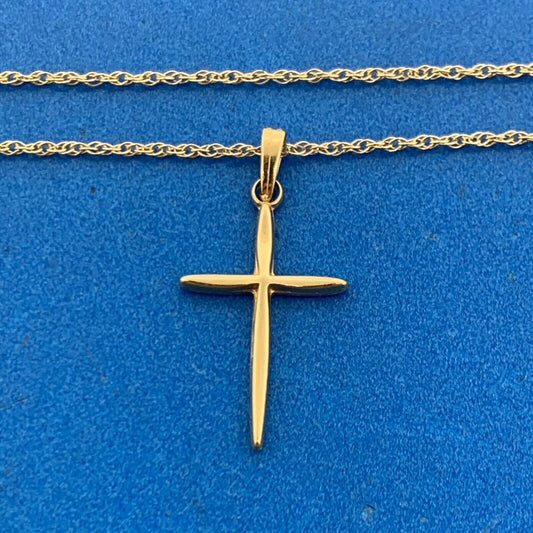 Designer 14K Yellow Gold Simplistic Modernist Cross Religious Necklace