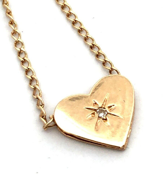 Designer BG 14K Yellow Gold Round Diamond Heart Charm Pendant Necklace