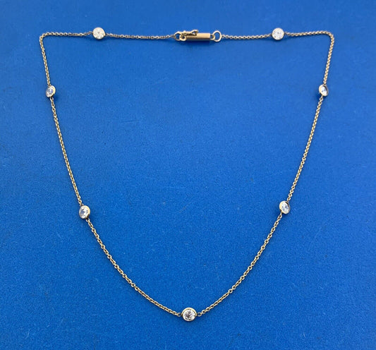 14K Yellow Gold Round White Tourmaline Station Necklace