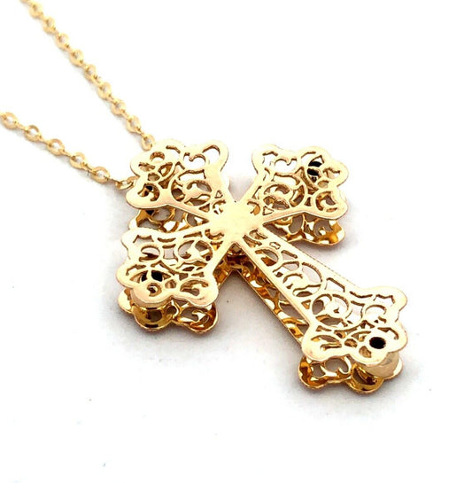 Estate Italy 14K Yellow Gold Open Work Scroll Cross Pendant Necklace