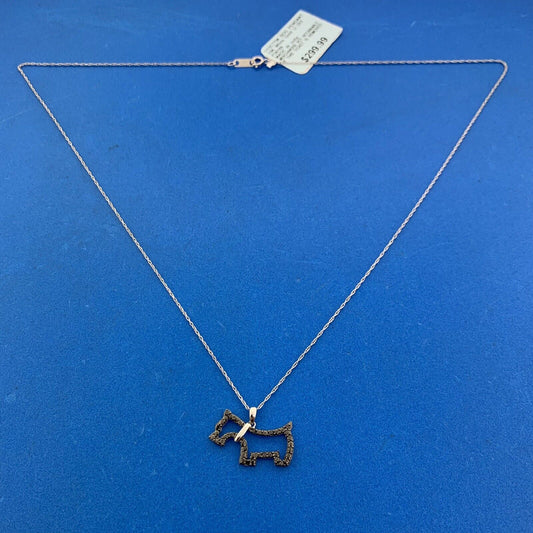 Designer 10K White Gold Black Diamond Scottish Terrier Dog Necklace NEW W/TAG