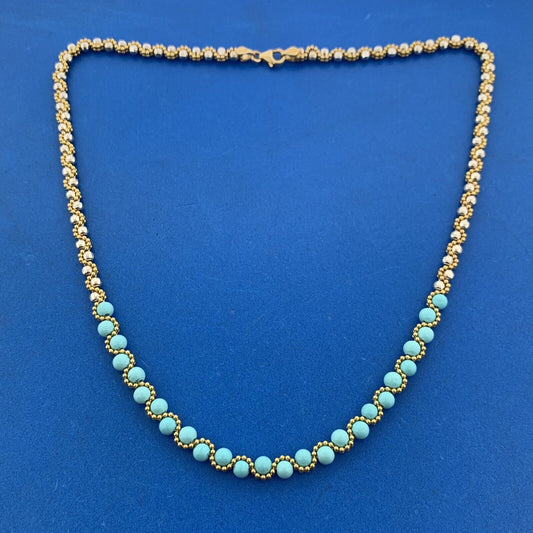 Designer Italy 14K Yellow White Gold Turquoise Bead Disco Gold Ball Necklace