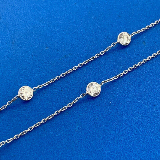 Designer 14K White Gold Round White Tourmaline Station Necklace