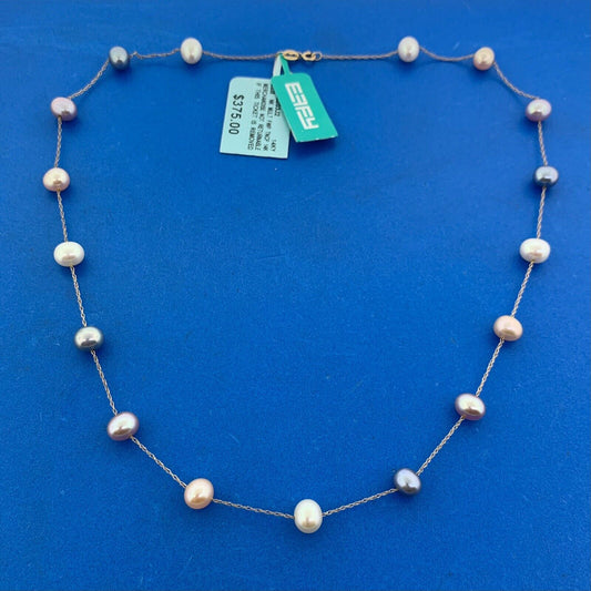 EFFY 14K Yellow Gold Multicolored Pearl Station Necklace New With Tags