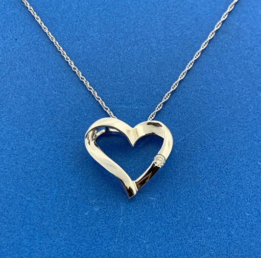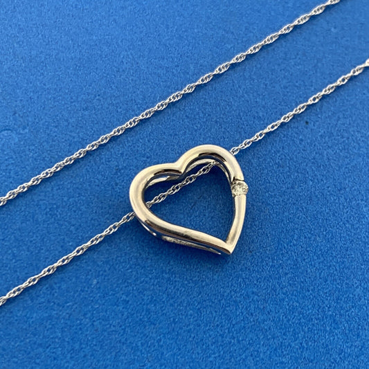 Designer 14K 10K White Gold Diamond Modernist Heart Pendant Necklace