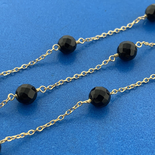 Designer 14K Yellow Gold Faceted Black Onyx Bead Station Chain Necklace