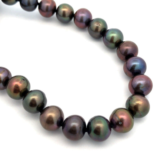 Designer FIC 14K Yellow Gold Round Tahitian Peacock Pearl Knotted Bead Necklace