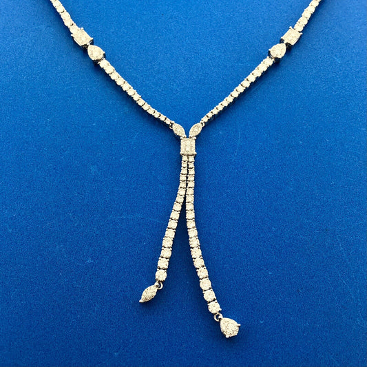 Designer 14K White Gold Multi-Cut Diamond Statement Waterfall Drop Necklace