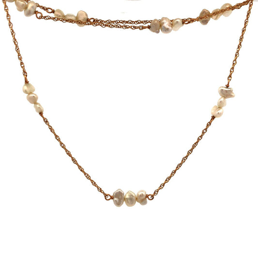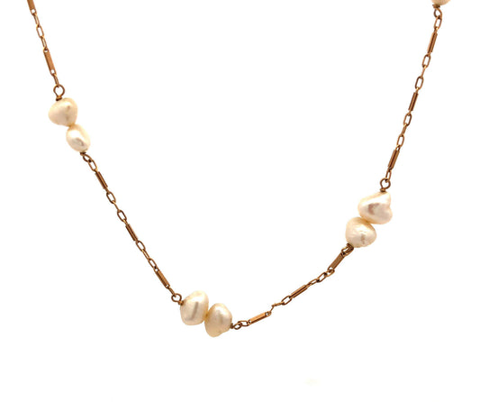 Estate 14K Yellow Gold Keshi Pearl Beaded Chain Station Necklace