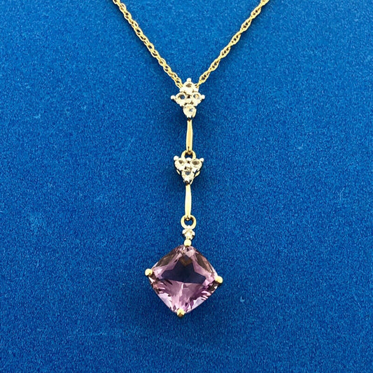 Gorgeous Midas 14k Yellow Gold Cushion Amethyst Quartz Accent 18" Necklace