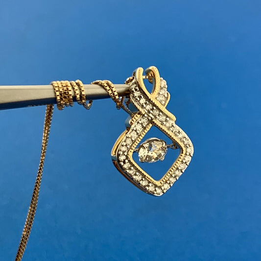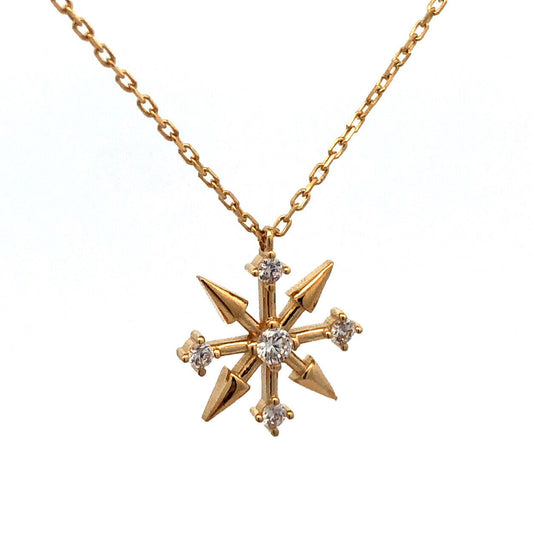 Retro 10K Yellow Gold Round Cubic Zirconia Star Burst Snowflake Pendant Necklace