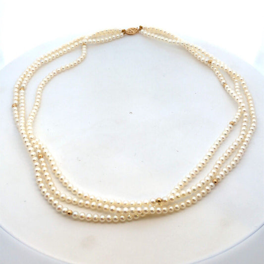 Designer 14K Yellow Gold White Pearl Beaded 3-Strand Necklace