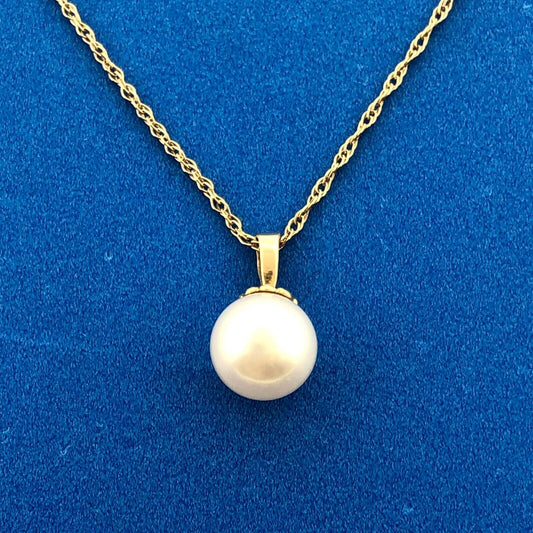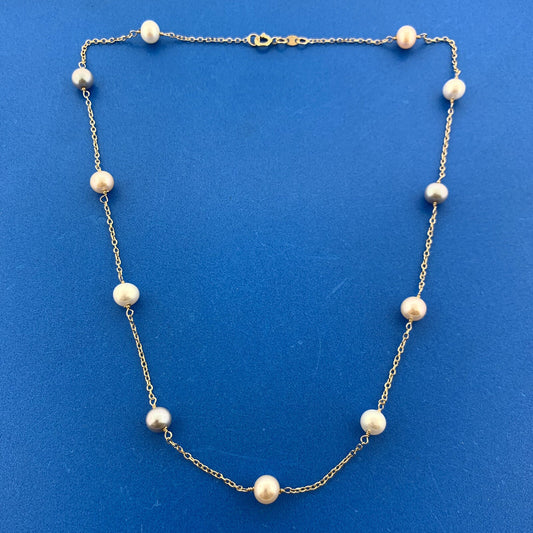 Gorgeous 14k Yellow Gold Gray White Cream Pearl 16" Chain Necklace