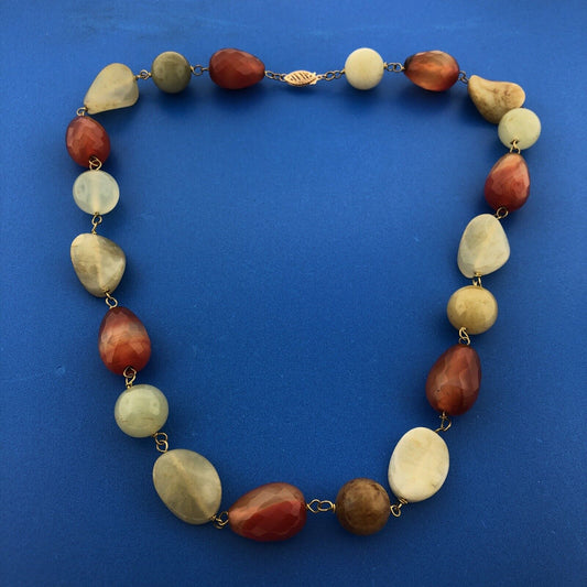 Designer 14K Yellow Gold Carnelian Jade Agate Chunky Bead Statement Necklace