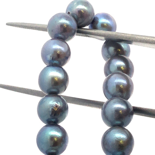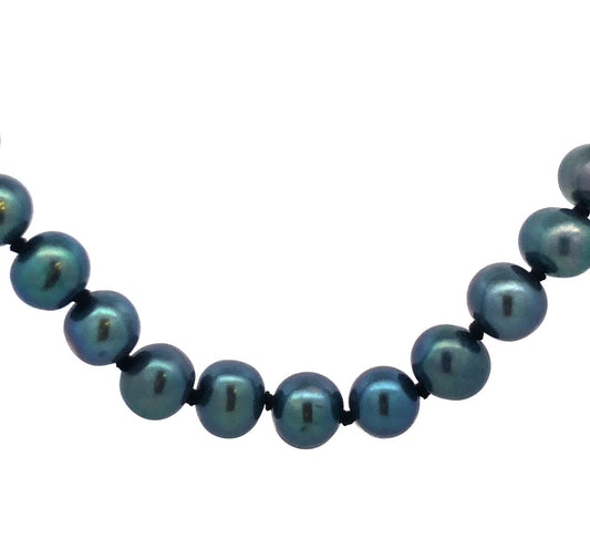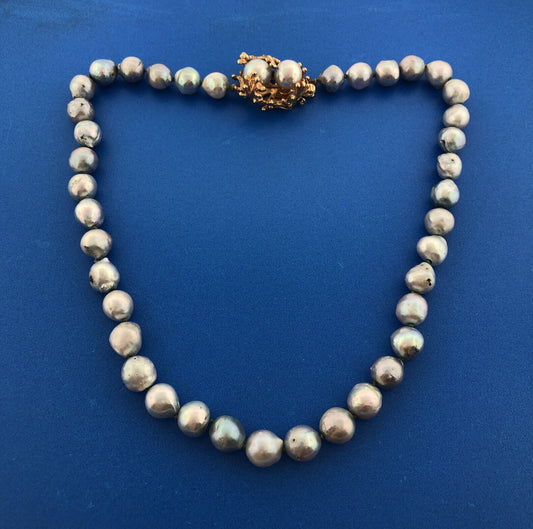 Retro 10K Yellow Gold Gray Peacock Pearl Wedding Bridal Pearl Necklace