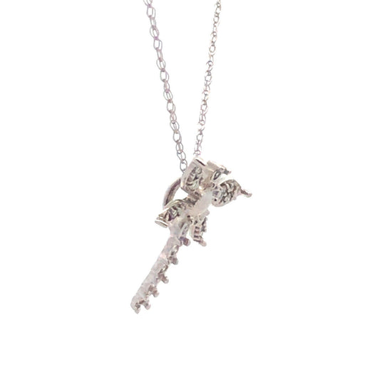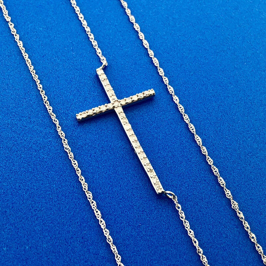 Designer 14K White Gold Diamond Bar Cross Religious Communion Easter Necklace