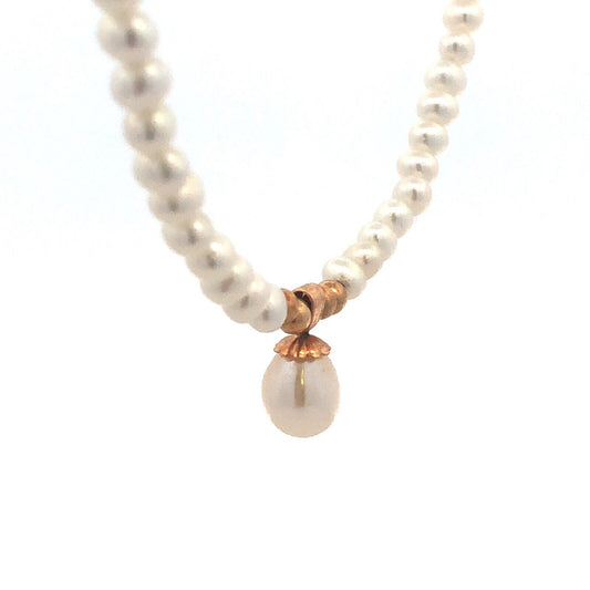Designer 14K Yellow Gold White Pearl Beaded Teardrop Pendant Necklace