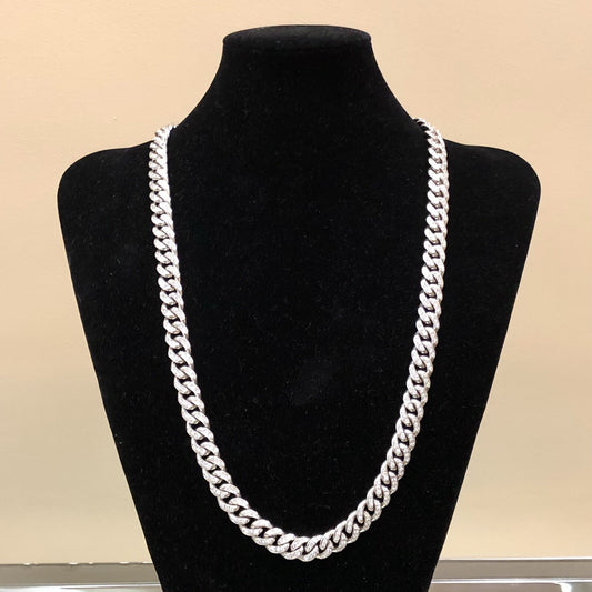 Heavy Solid 14K White Gold Diamond Encrusted Miami Cuban Link Chain Necklace
