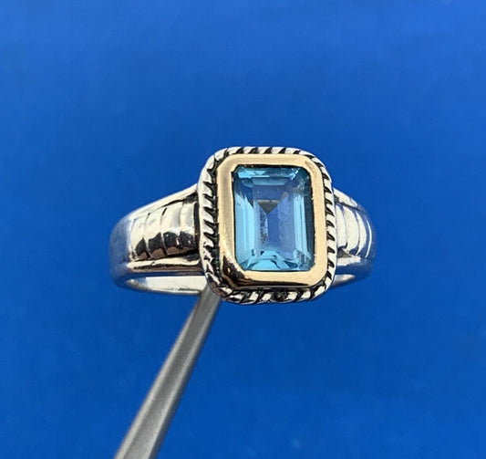 Silpada 14K Yellow Gold 925 Sterling Silver Emerald Cut Blue Topaz Cocktail Ring
