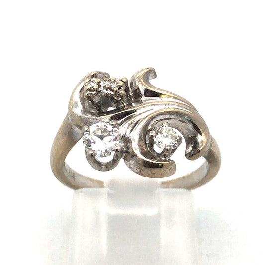 Art Deco 14K White Gold Diamond Fleur De Lis Flower Cluster Cocktail Ring