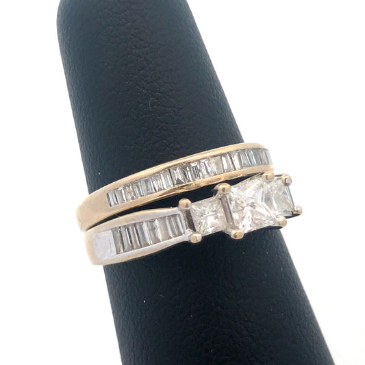 ZEI 14K White Gold Princess Cut Diamond Channel Set Accent Bridal Band Ring Set