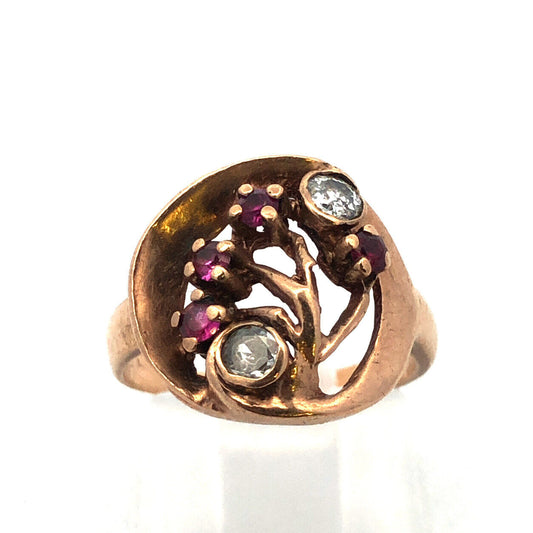 Vintage 14K Yellow Gold Diamond Ruby Free Form Cocktail Ring