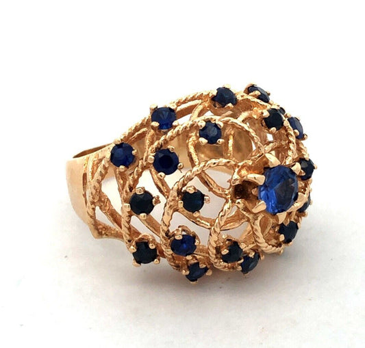 Estate 18K Yellow Gold Blue Sapphire Open Work Harem Cocktail Statement Ring