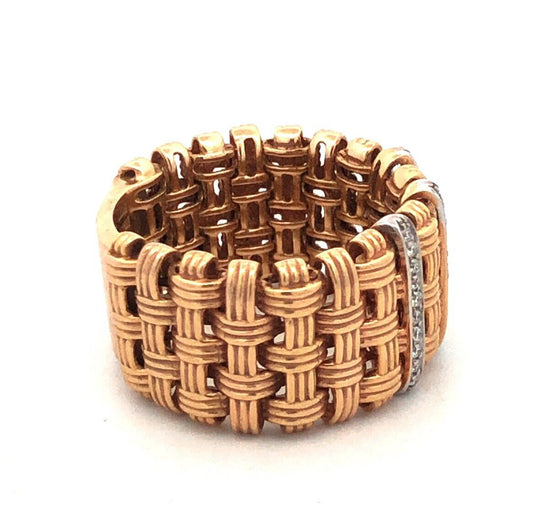 Roberto Coin 18K Yellow White Gold Appassionata Diamond Woven Band Ring