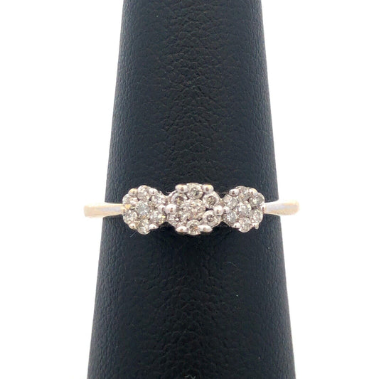 Designer 14k White Gold Flower Trio Past Present Future Diamond Cluster Ring