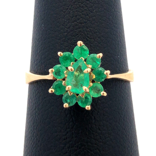 18K Yellow Gold Estate Emerald Floral Cluster May Anniversary Cocktail Ring