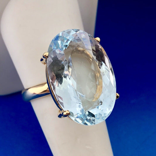 Stunning 14K Yellow Gold Oval Solitaire Blue Topaz Statement Cocktail Ring