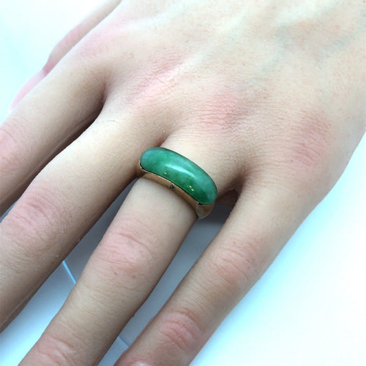 Modernist 18K Yellow Gold Oval Green Jade Cabochon Dome Band Ring