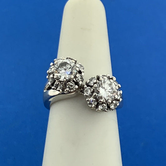 Vintage 18K White Gold Diamond Duo W/Halo Statement Bypass Ring