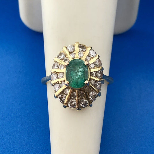 Fabulous 18K Yellow Gold Oval Emerald Round Diamond Anniversary Cocktail Ring