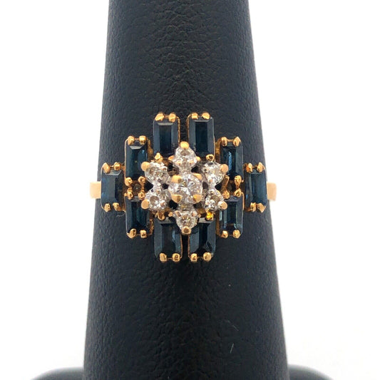 Vintage Estate 18k Yellow Gold Diamond Cluster Sapphire Accent Ring Size 6.25